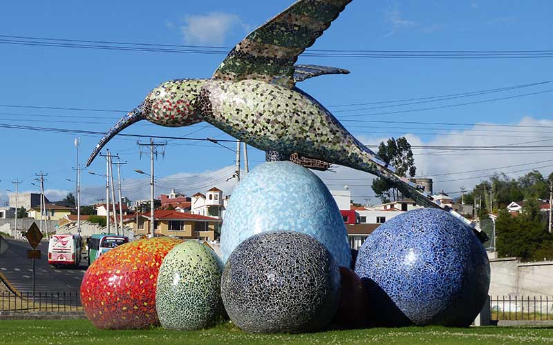 Visit the colonial historic center of Sangolquí with the central place, a beautiful church and colonial houses; furthermore Sangolquí has modern monuments (General Rumiñahui, El Choclo (the corn cob) and El Colobrí (the hummingbird), urban parks, a lively market (Thursdays and Sundays) and shopping malls